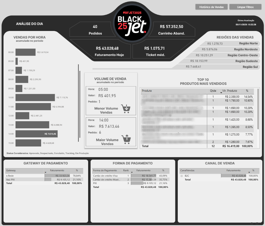 O relatório exclusivo para a Black Friday 2025, que estará disponível durante o mês de novembro, oferece informações essenciais para impulsionar o sucesso nas vendas, com duas visões distintas: Análise do Dia e Histórico de Vendas.