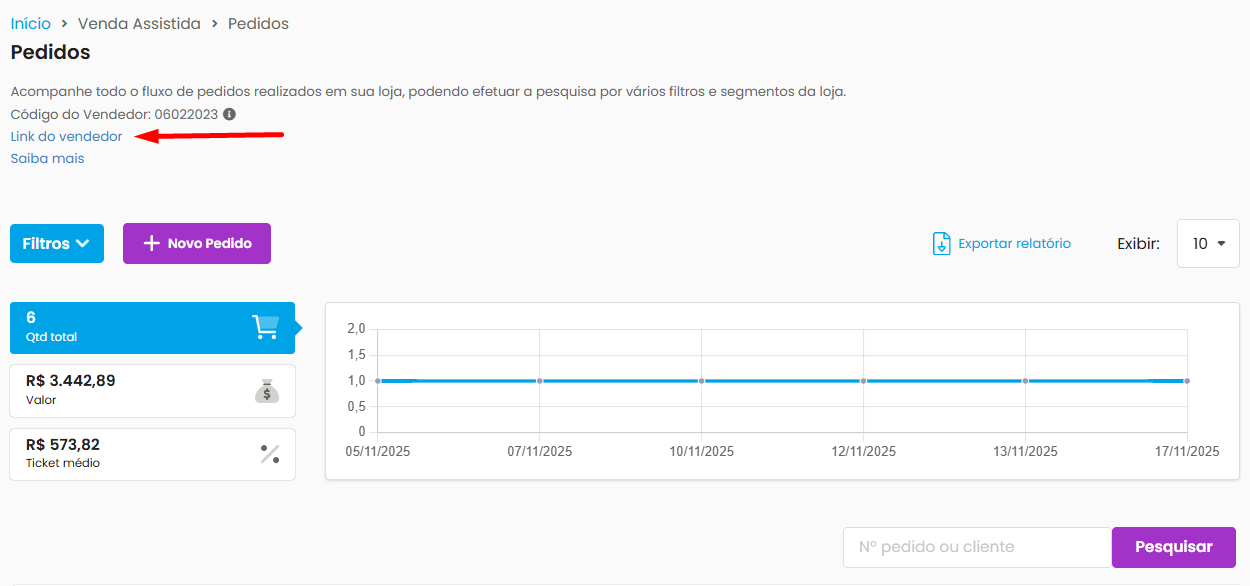 – Caso o seu cliente volte para a página inicial da loja e adicione mais produtos ao seu carrinho, o pedido ainda continuará vinculado ao seu código de vendedor.