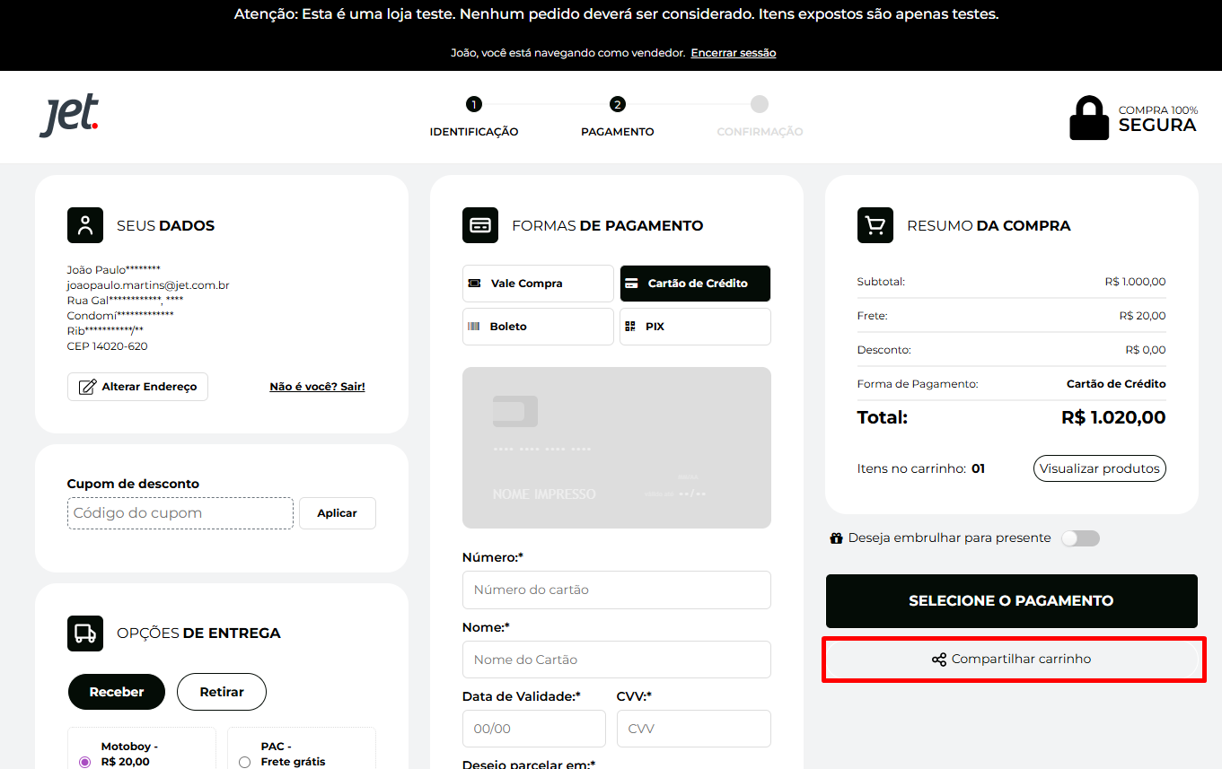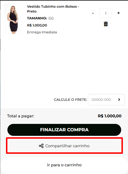 Observação: ao compartilhar o link pelo carrinho, o cliente deverá se identificar para concluir o pedido.