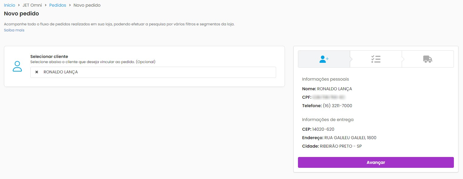 Depois, é só seguir com o fluxo normal de criação de pedido mas, com os produtos já adicionados.